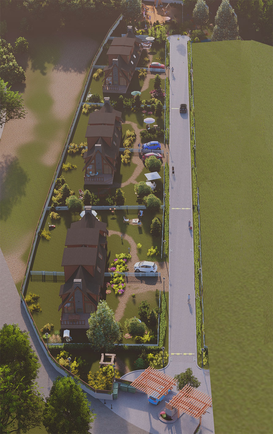 Giriş kat ve loft katından oluşan evlerimizin her biri 108m² büyüklüğündedir ve kişiye özel 260 m² bahçe içinde yer almaktadır. Giriş katta salon ve mutfak, bir oda ve banyo bulunmaktadır. Ayrıca birinci katın önünde 17 m² büyüklüğünde bir veranda yer almaktadır. Loft katta ise yatak odası ve ebeveyn banyosu ile galeri sahanlığı yer almaktadır.